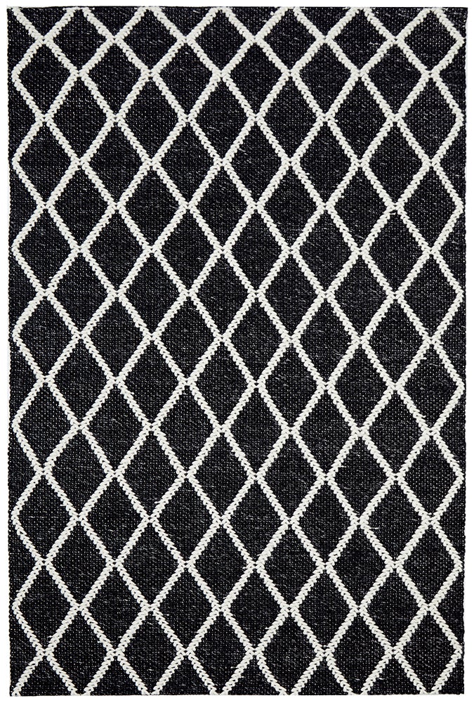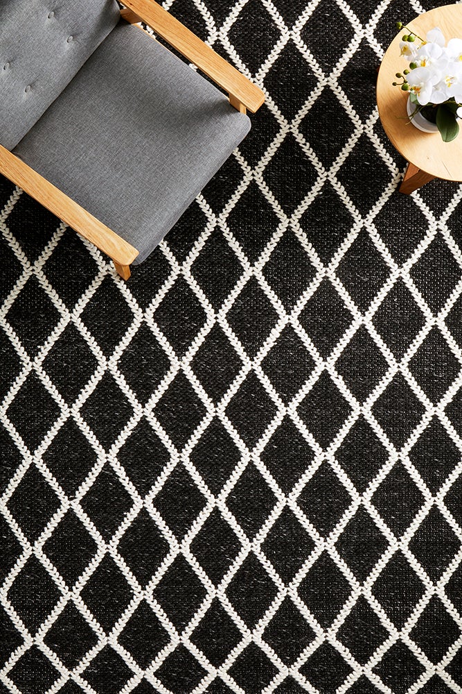A perfect way to add a touch of luxury to your living space, Huxley is sure to complement contemporary interiors with it's bold design. A timeless and elegant design, Huxley features a striking diamond pattern on a beautiful black backdrop. Huxley has been masterfully constructed in India from a luxurious pile of wool and polyester fibres that have been hand loomed to create a silky soft and dense underfoot.