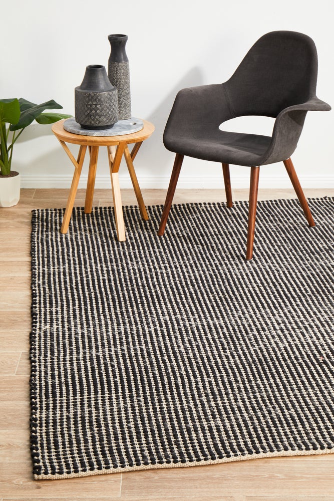 Bringing the uniqueness and character are the main motif of the Skandinavia rug range. This beautiful Black pile opens the flat weave back into the fashion line, skillfully constructed using 100% wool and expertly hand made in India to stay tough and beautiful even in high traffic areas. It reflects the latest Scandinavian trend to contemporary feels to any home setting.