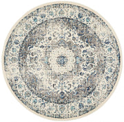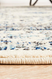 Evoke Mist White rug's gushing flower-and-vine motif induces images of meticulous crewelwork embroidery on white context and blue filled edges. Refreshingly clean and open, this richly textured power loomed pile is colored in warm autumnal hues and crafted in Turkey with artisan quality making this piece ideal in the underfoot and in high traffic scope in every adobe.